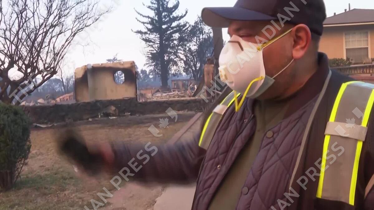 Juan Perez returned to the ruins of the home where he raised his kids in Altadena, California, a day after seeing it in flames as he drove by. (AP video: Manuel Valdes)