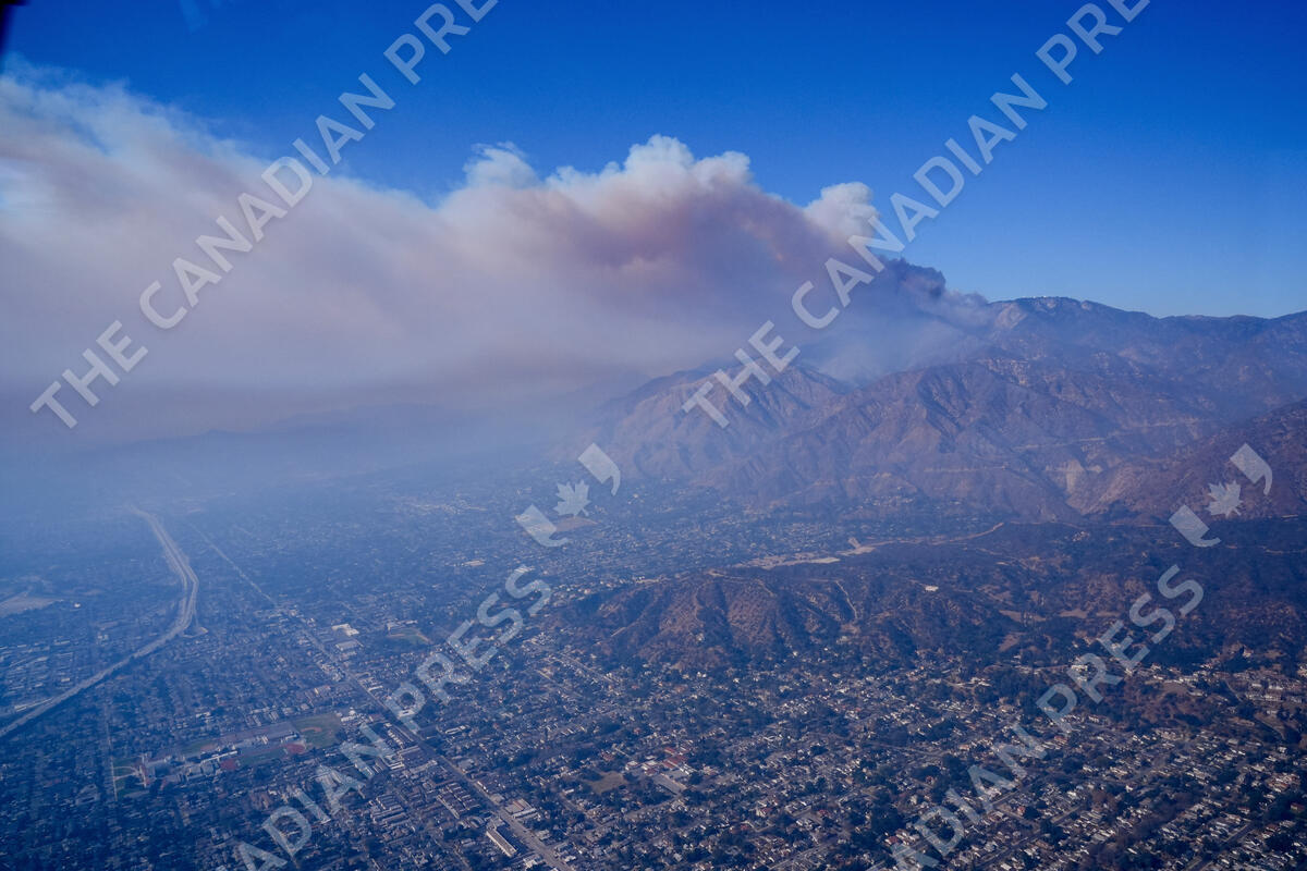 A plume of smoke from a wildfire forms over the city's basin Thursday, Jan. 9, 2025 in Los Angeles. (AP Photo/Mark J. Terrill)