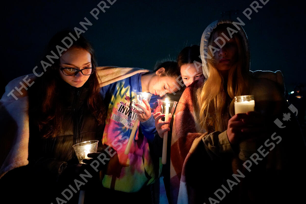 Mourners hold a candlelight vigil for Alexandria Verner at the Clawson High School football field in Clawson, Michigan, Tuesday, Feb. 14, 2023. Verner was among the students killed after a gunman opened fire on the campus of Michigan State University Monday night. (AP Photo/Paul Sancya)