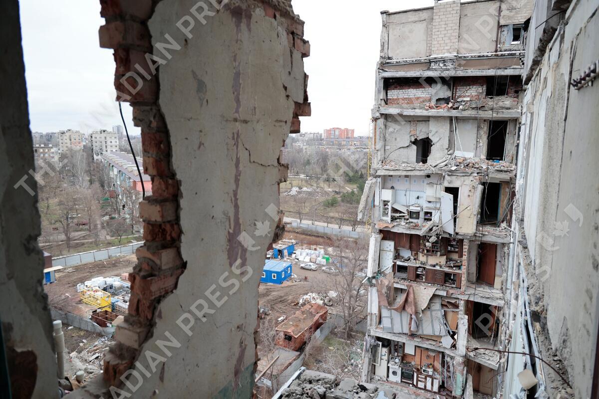 A view of an apartment building, damaged during a heavy fighting, in Mariupol, in Russian-controlled Donetsk region, eastern Ukraine, Thursday, Jan. 5, 2023. (AP Photo/Alexei Alexandrov)