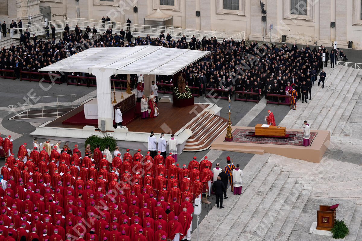 Dignitaries stand during the funeral mass for late Pope Emeritus Benedict XVI in St. Peter's Square at the Vatican, Thursday, Jan. 5, 2023. Benedict died at 95 on Dec. 31 in the monastery on the Vatican grounds where he had spent nearly all of his decade in retirement. (AP Photo/Ben Curtis)