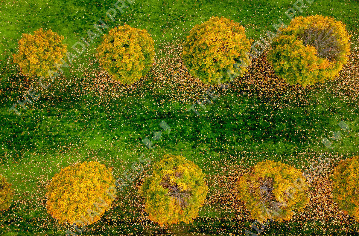 Trees stand in small park in Frankfurt, Germany, Tuesday, Nov. 8, 2022. (AP Photo/Michael Probst)