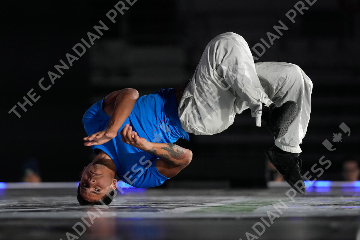 Victor Bernudez Montalvo of the United States known as B-boy Victor competes against Shigeyuki Nakarai of Japan known as B-boy Shigekix during the 2022 World Breaking Championship in Seoul, South Korea, Saturday, Oct. 22, 2022. Breakdancing will make its debut as an Olympic sport at the 2024 Paris Olympics. (AP Photo/Lee Jin-man)