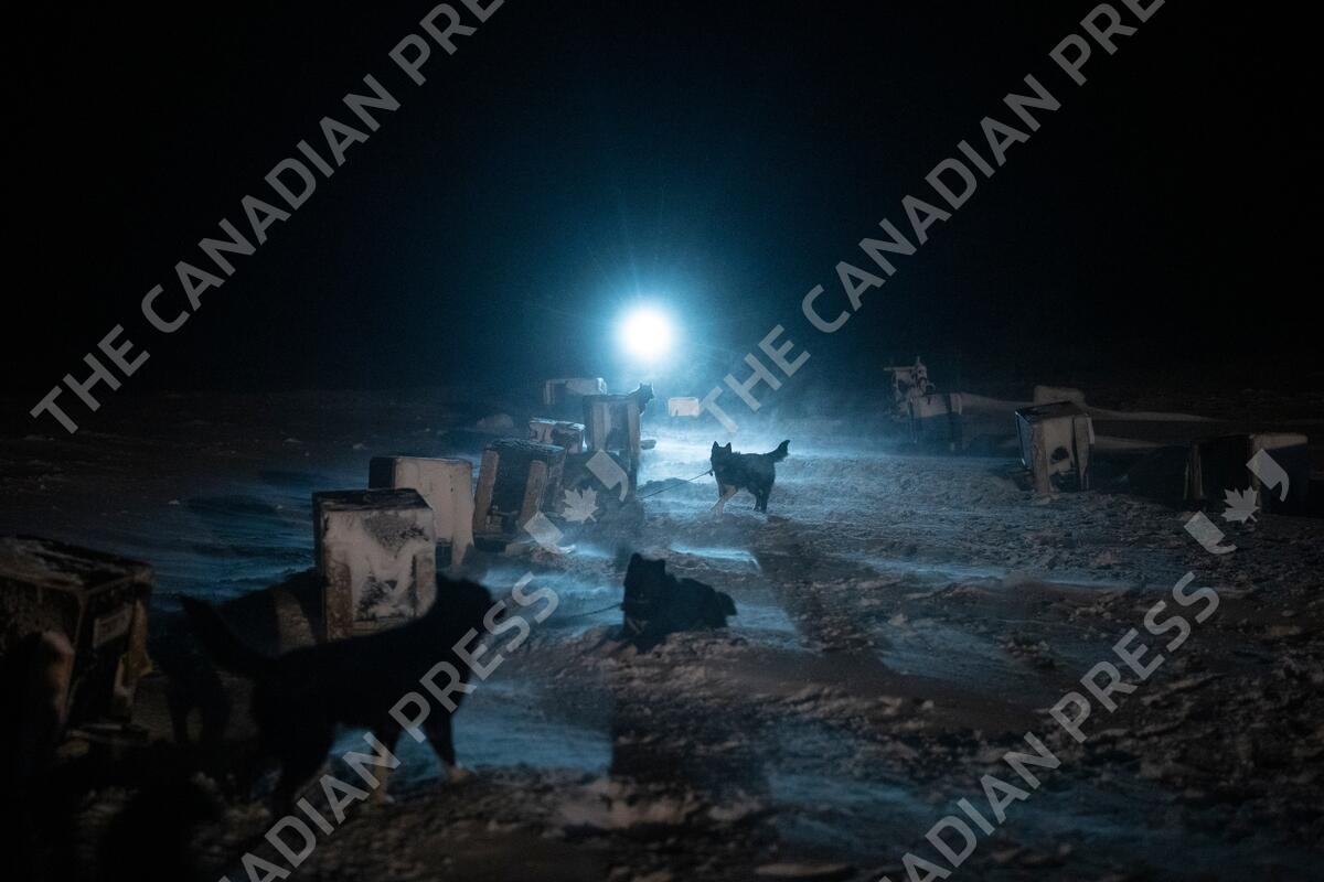 A dog sledder returns to a dog yard after training puppies to sled in Bolterdalen, Norway, Tuesday, Jan. 10, 2023. The yard is located half a dozen miles from the main village in Svalbard, a Norwegian archipelago so close to the North Pole that winter is shrouded in uninterrupted darkness. (AP Photo/Daniel Cole)