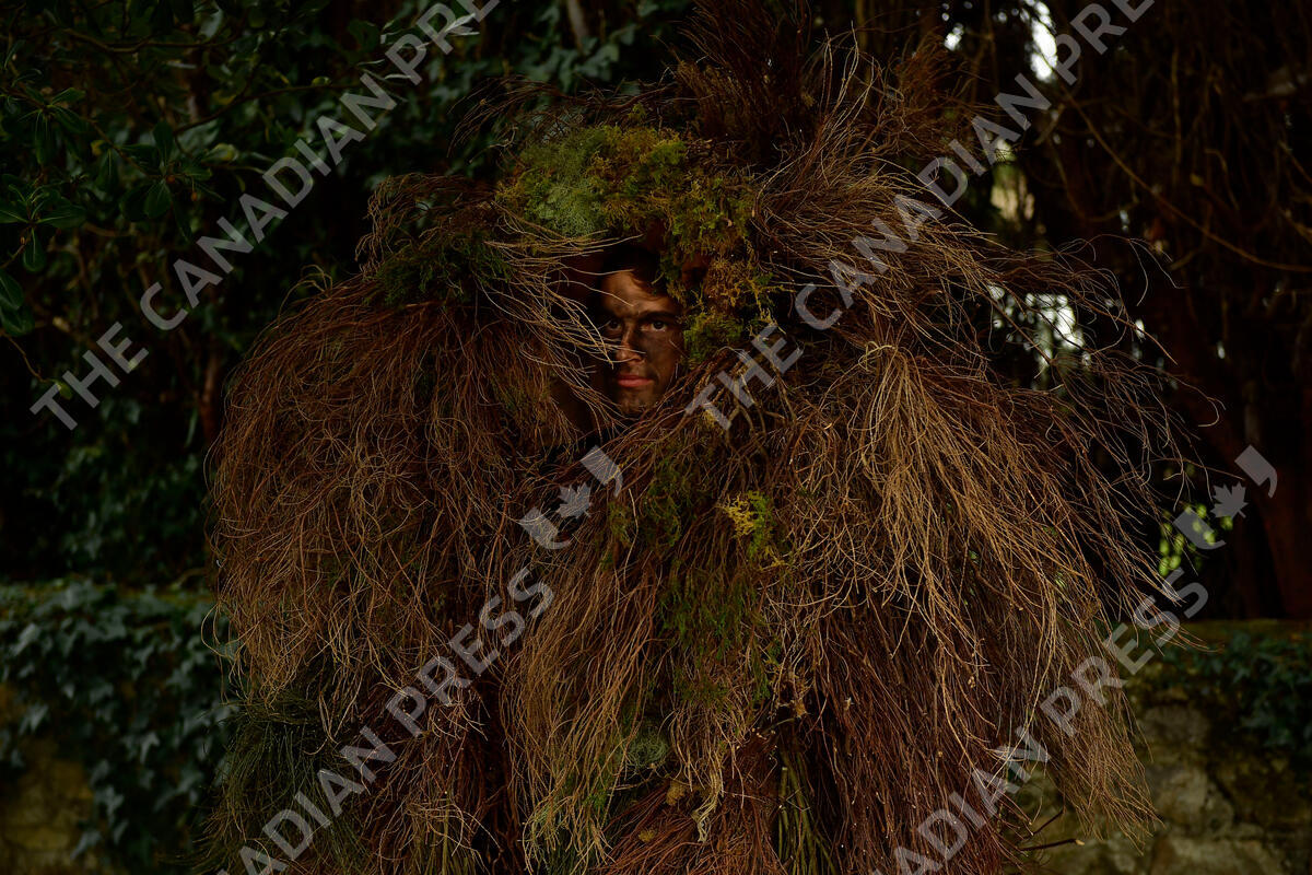 A member of the carnival group 'La Vijanera de Silio' poses during the traditional ancient festival in the town of Silio, northern Spain, Saturday, Jan. 7, 2023. (AP Photo/Alvaro Barrientos)