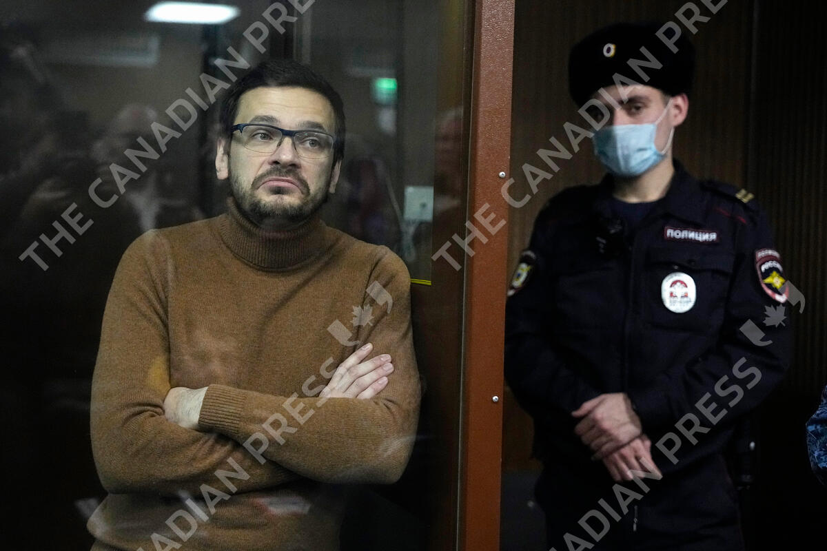 Russian opposition activist and former municipal deputy of the Krasnoselsky district Ilya Yashin stands in a cage in a courtroom prior to a hearing in Moscow, Russia, Tuesday, Nov. 29, 2022. Yashin, one of the few prominent opposition figures to have remained in the country amid an intensifying crackdown on dissent was arrested in June and later was charged with spreading false information about the Russian military, facing up to 10 years in prison if convicted. (AP Photo/Alexander Zemlianichenko)