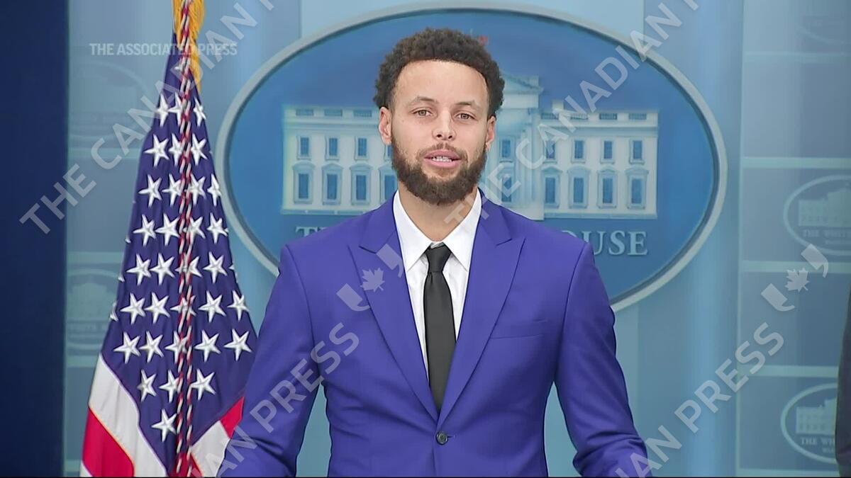 Golden State Warriors star Steph Curry and coach Steve Kerr made a surprise appearance at the White House briefing Tuesday before celebrating their 2022 championship. Curry thanked President Joe Biden for getting WMBA star Brittney Griner home. (Jan. 17)