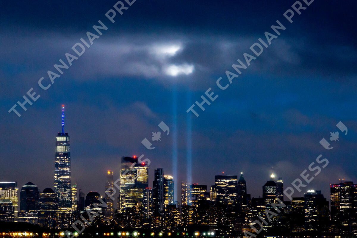 The annual Tribute in Light display illuminates clouds above Lower Manhattan on the 21st anniversary of 9/11 on Sunday, Sept. 11, 2022, in New York. (AP Photo/Julia Nikhinson)