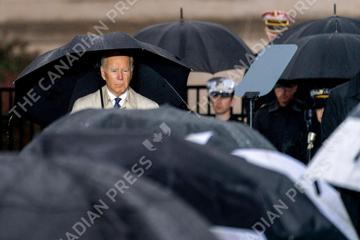 President Joe Biden attends a ceremony at the Pentagon in Washington, Sunday, Sept. 11, 2022, to honor and remember the victims of the Sept. 11, 2001 terror attack. (AP Photo/Andrew Harnik)