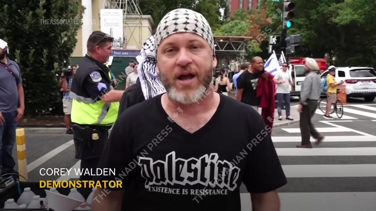 After a mass demonstration Wednesday outside the Capitol, Gaza war protesters turned their focus to the White House, where President Joe Biden met with Israeli Prime Minister Benjamin Netanyahu Thursday. (AP video: Mike Pesoli)