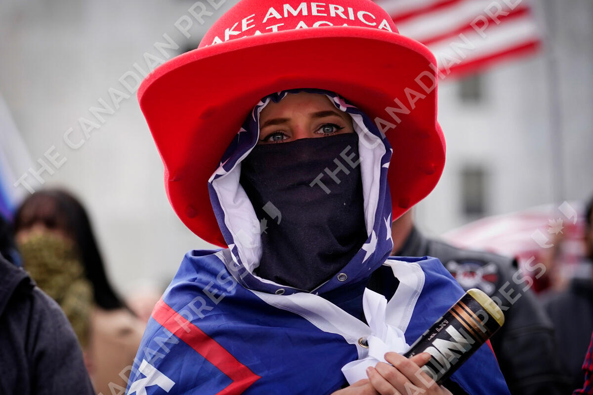 A protester holds a baseball bat while standing Saturday, Nov 7, 2020, in Salem, Ore., after Democrat Joe Biden defeated President Donald Trump to become 46th president of the United States. (AP Photo/Marcio Jose Sanchez)