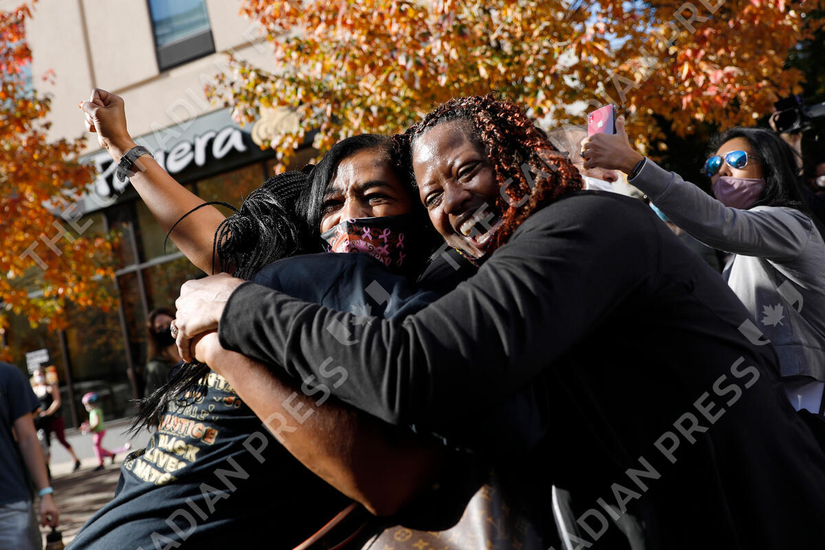 People celebrate Saturday, Nov. 7, 2020, in Philadelphia, after Democrat Joe Biden defeated President Donald Trump to become 46th president of the United States. (AP Photo/Rebecca Blackwell)