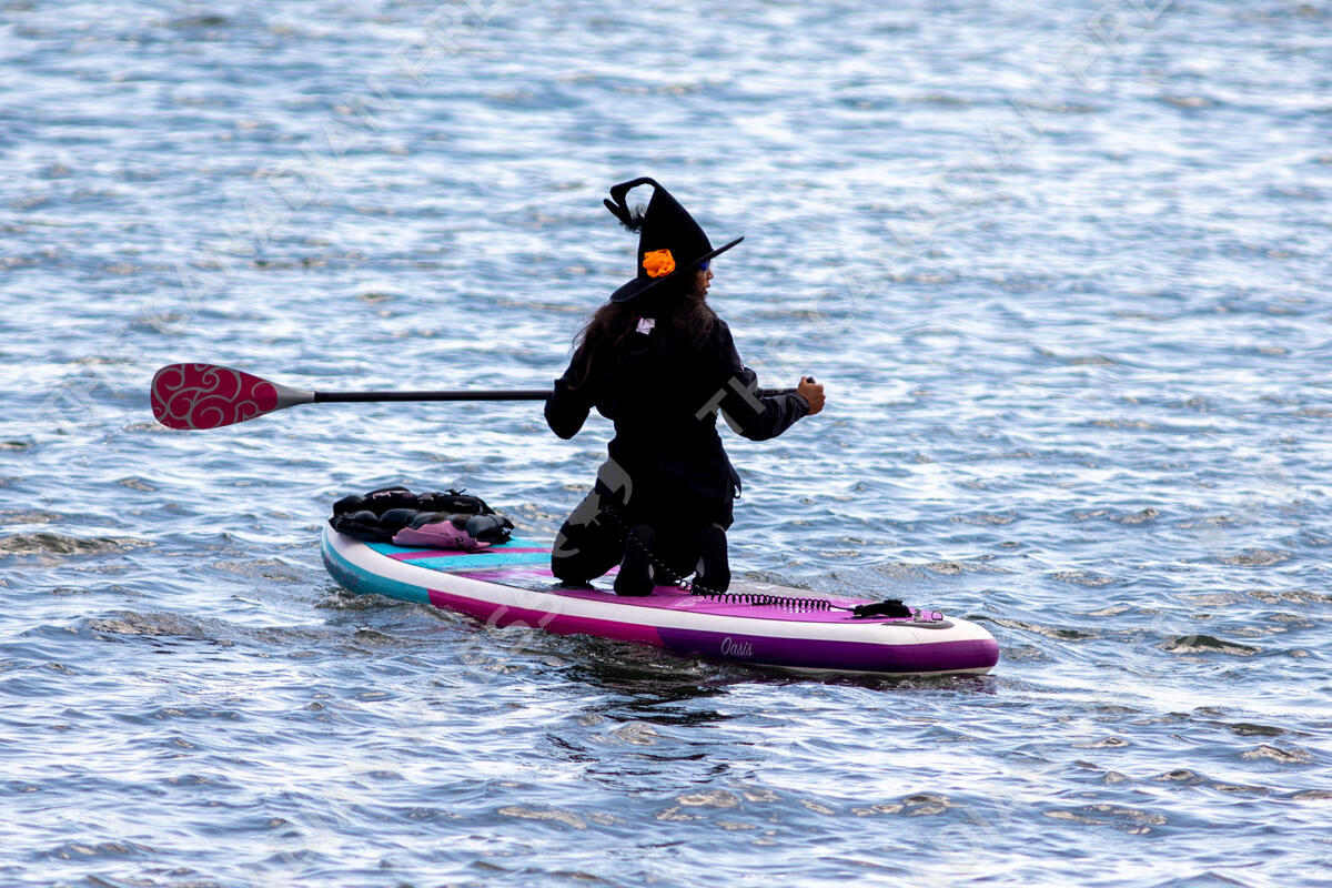Members of the Buddy Standup Paddleboard group organized a Halloween Paddle Event which collected non-perishable food items for the Toronto Food Not Bombs organization. The group departed from Humber Bay Park West and completed a five-kilometre loop in Toronto on Saturday, October 17, 2020. THE CANADIAN PRESS/Carlos Osorio