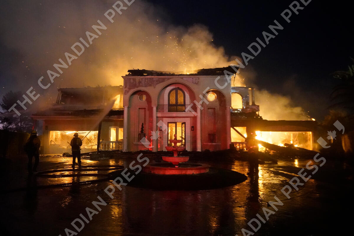 Firefighters spray water on a structure burning during a wildfire Wednesday, May 11, 2022, in Laguna Niguel, Calif. (AP Photo/Marcio J. Sanchez)