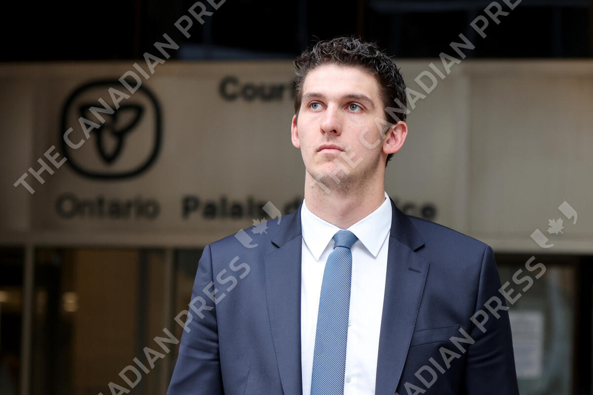 Cal Foote is seen leaving the London Courthouse in London, Ont., Wednesday, April 30, 2025. THE CANADIAN PRESS/Nicole Osborne