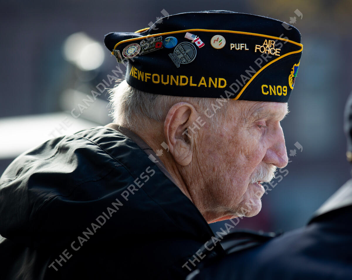 Ray Reiser, a US Air Force veteran of the Korean War, one of several Americans who married Newfoundland women and now live in Newfoundland, attends the Remembrance Day ceremony at the Newfoundland and Labrador National War Monument in St.John's, Monday, November 11, 2024. THE CANADIAN PRESS/Paul Daly
