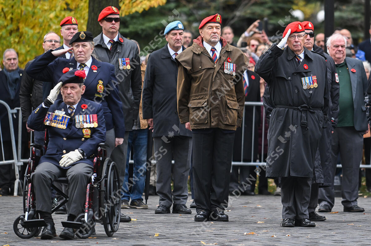 Veterans salute during a Remembrance Day ceremony in Montreal, Monday, November 11, 2024. THE CANADIAN PRESS/Graham Hughes