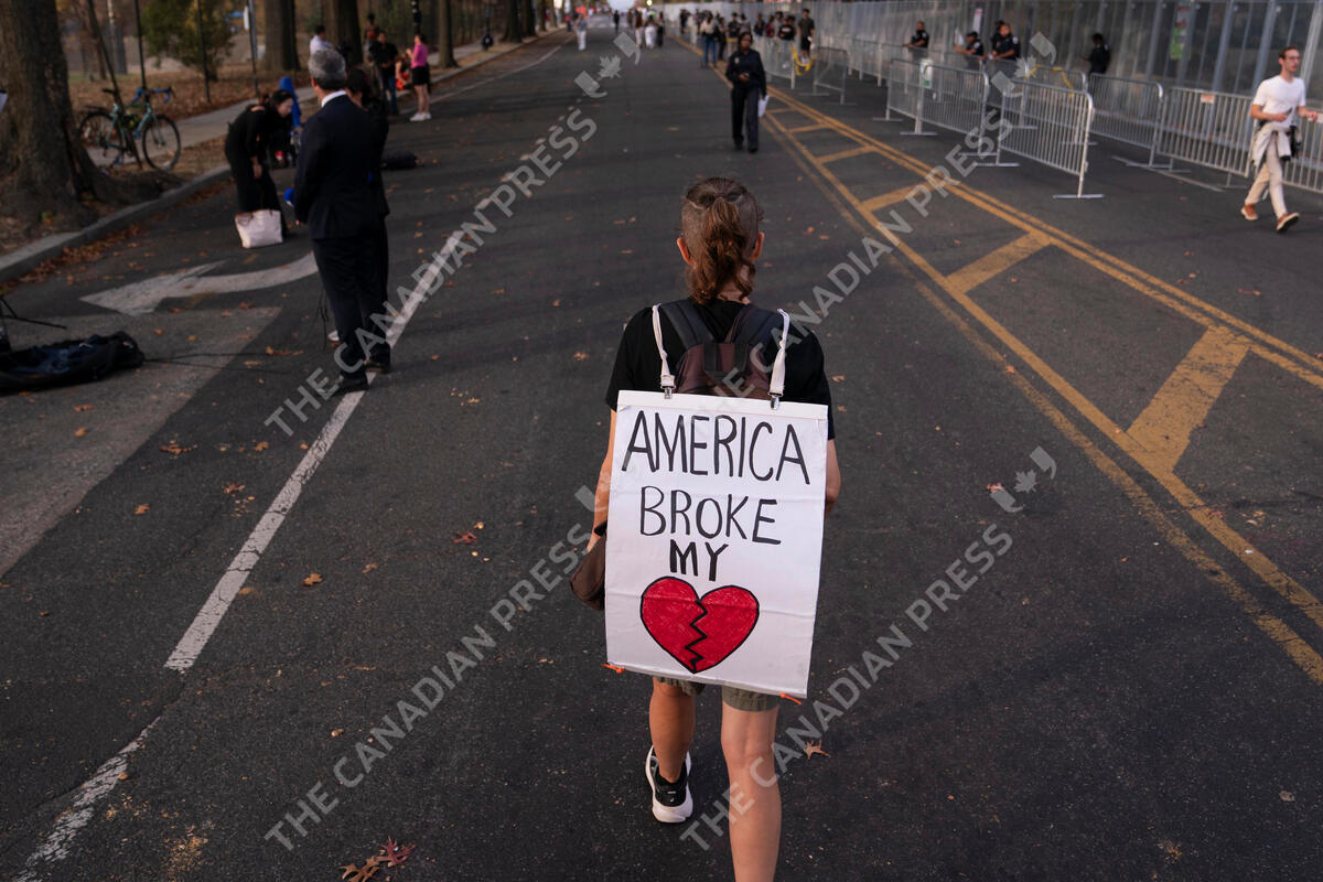 Robin Galbraith walks near the entrance as Vice President Kamala Harris delivers a concession speech for the 2024 presidential election, Wednesday, Nov. 6, 2024, on the campus of Howard University in Washington.(AP Photo/Nathan Howard)