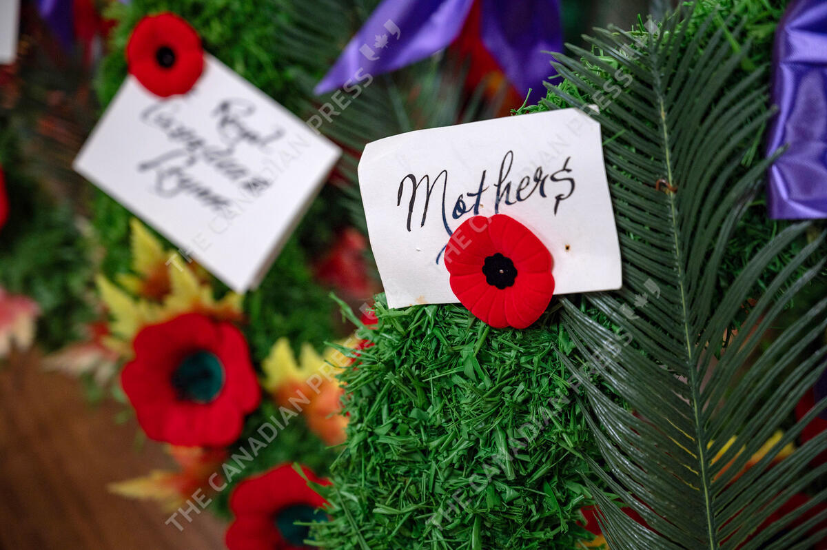 Wreaths are shown during a Remembrance Day service in Duck Lake, Sask. on Monday, November 11, 2024. THE CANADIAN PRESS/Liam Richards