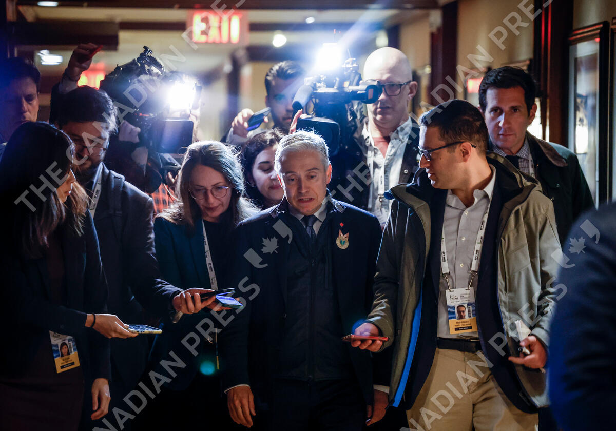 Canada's Finance Minister Francois-Philippe Champagne, centre, leaves the G7 Finance Ministers meeting in Banff, Alta., Wednesday, May 21, 2025.THE CANADIAN PRESS/Jeff McIntosh