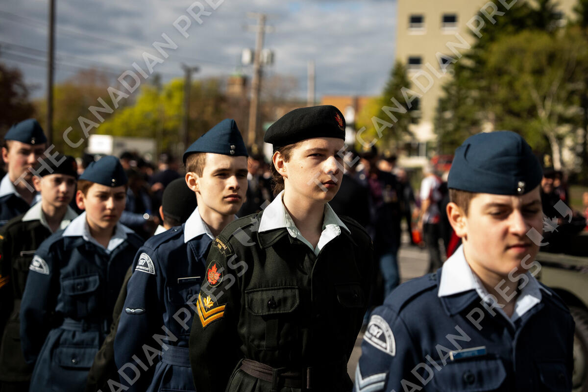 Military cadets participate in a parade during the 2025 Memorial Cup opening ceremonies in Rimouski, Que., on Thursday, May 22, 2025. THE CANADIAN PRESS/Christopher Katsarov