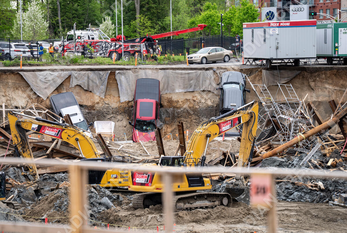 A collapse is seen on a construction site in Blainville, Que., on Tuesday, May 20, 2025. THE CANADIAN PRESS/Christinne Muschi