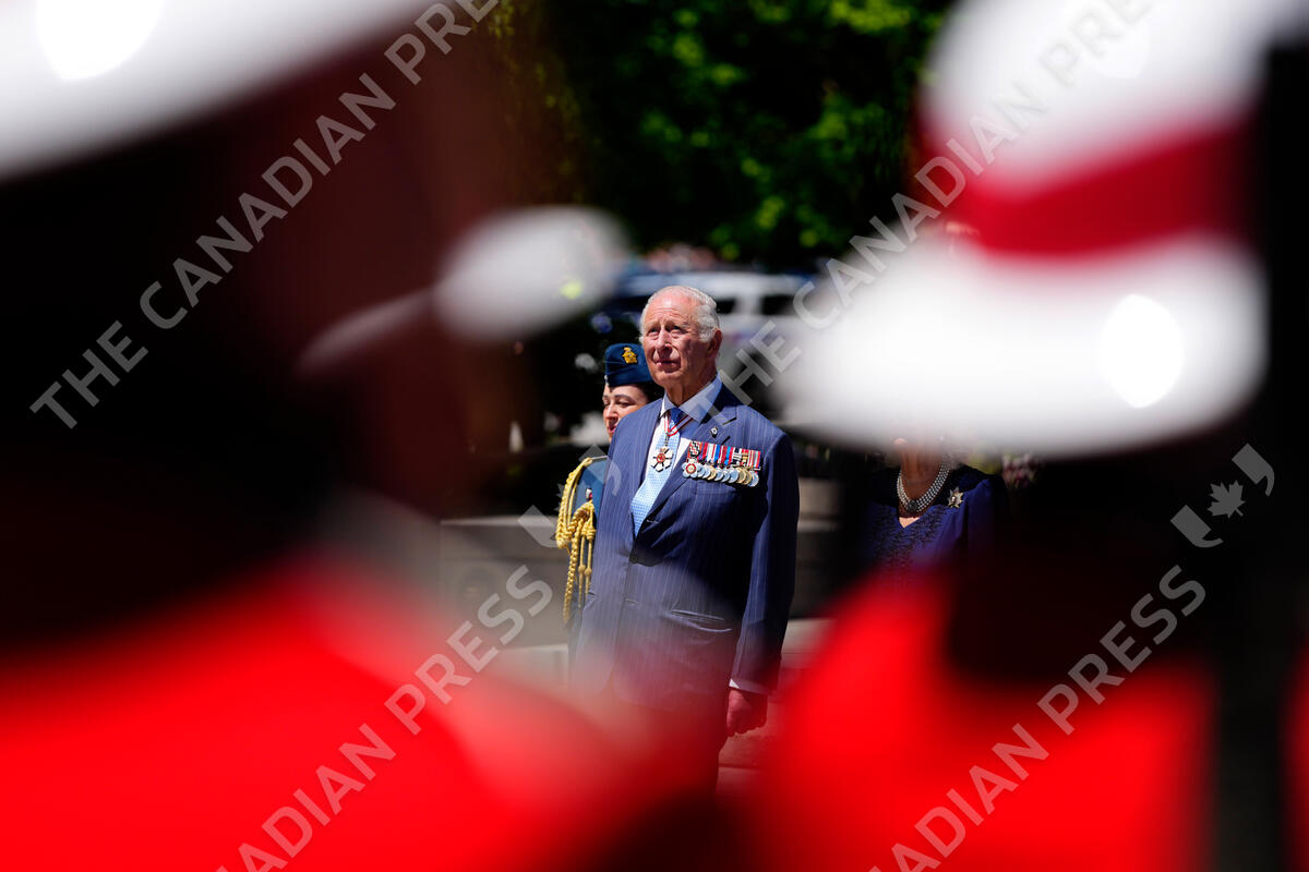 King Charles watches a flypast after laying a wreath at the Tomb of the Unknown Soldier at the National War Memorial in Ottawa during a royal visit on Tuesday, May 27, 2025. THE CANADIAN PRESS/Justin Tang
