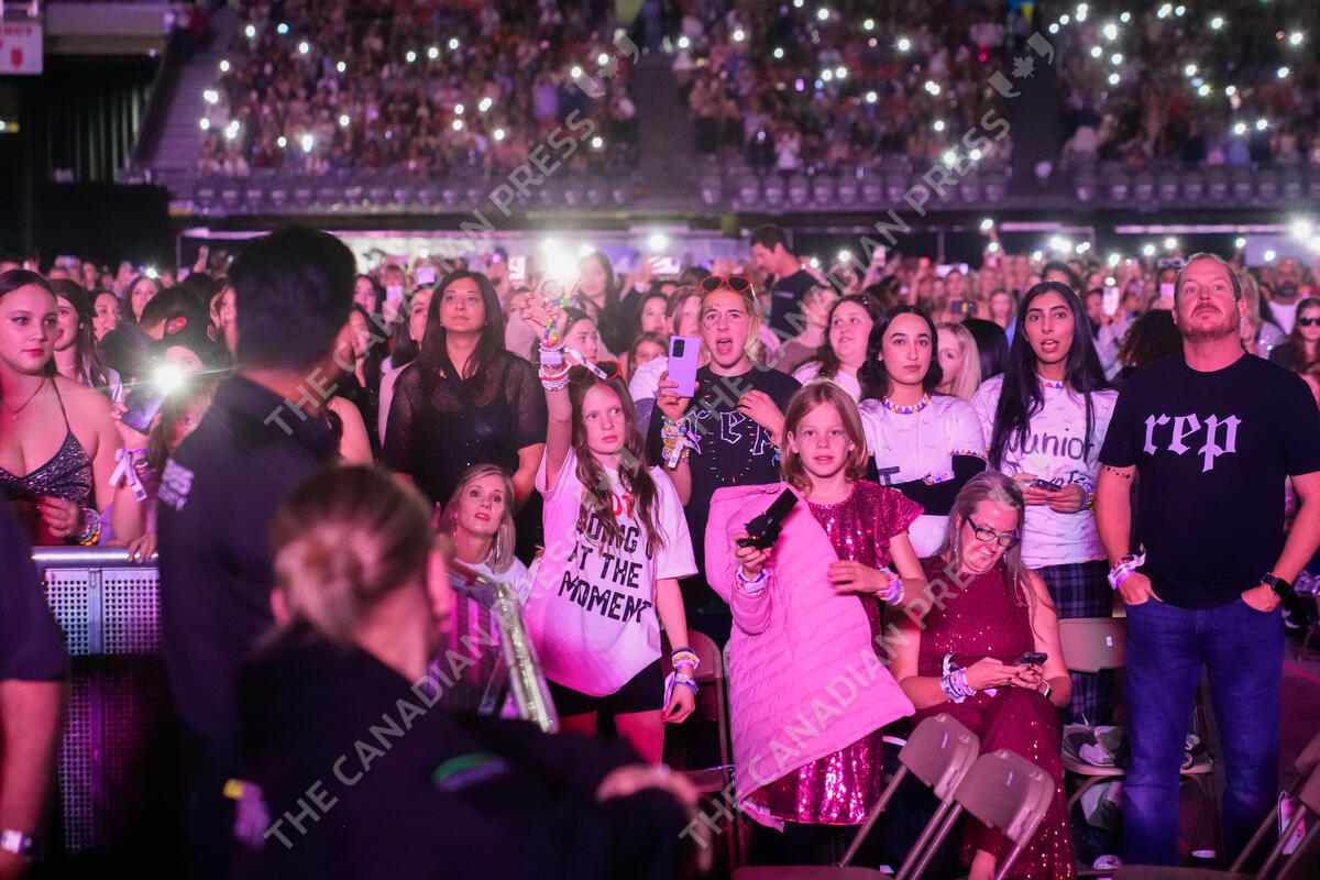 Concertgoers watch on during Taylor Swift's "The Eras Tour" on Friday, Dec. 6, 2024, in Vancouver, British Columbia. (AP Photo/Lindsey Wasson)