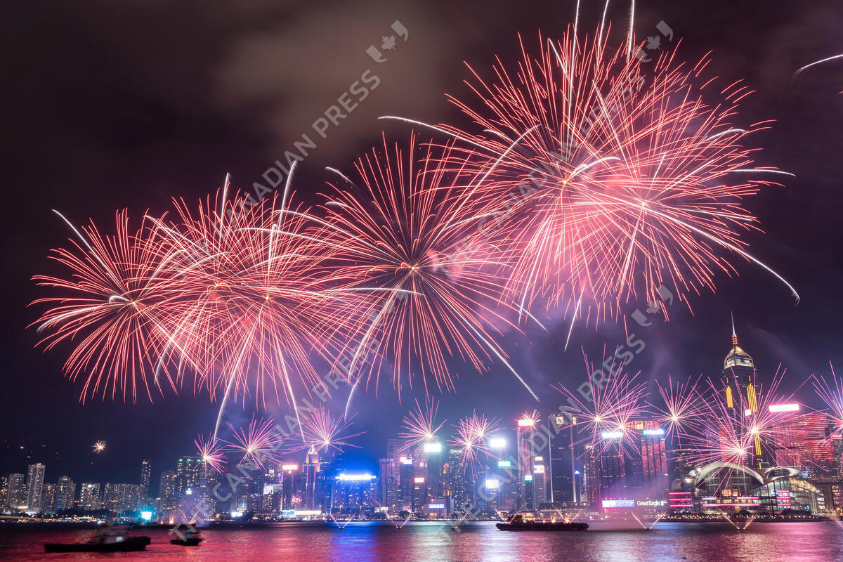 Fireworks explode over Victoria Harbour to mark the 75th National Day of the People's Republic of China, at Tsim Sha Tsui in Hong Kong, Tuesday, Oct. 1, 2024. (AP Photo/Chan Long Hei)