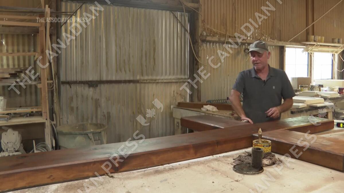 An Ingram, Texas carpenter has built a massive cross to be cemented outside Camp Mystic to honor those that lost their lives in the deadly flash floods that swept through central Texas during July 4th weekend. (AP Video: Stephen Smith)