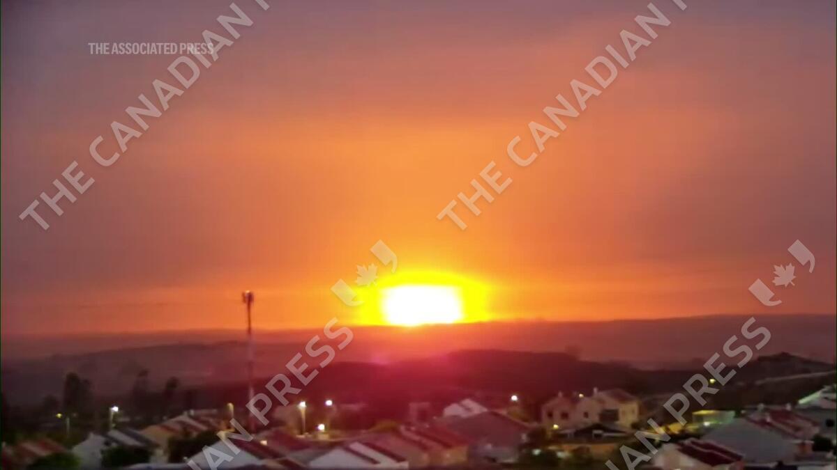 Explosions lit up the night sky over the Gaza Strip in a fiery orange glow, as fighting between Israel and Hamas continued. Several blasts were seen across the skyline early Saturday, with plumes of smoke rising.