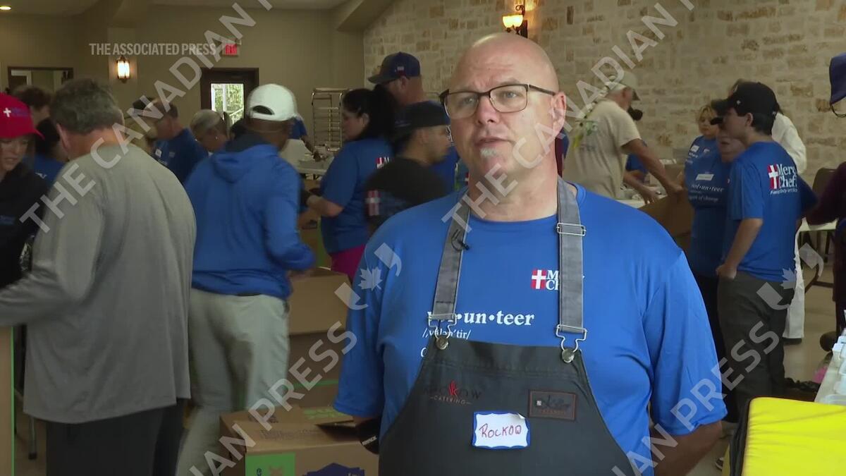 A Dallas chef whose daughters once attended Camp Mystic in the Texas hill country has returned to help prepare meals in the aftermath of the flash flooding that has claimed more than 100 lives, including many campers.(AP Video: Lekan Oyekanmi)