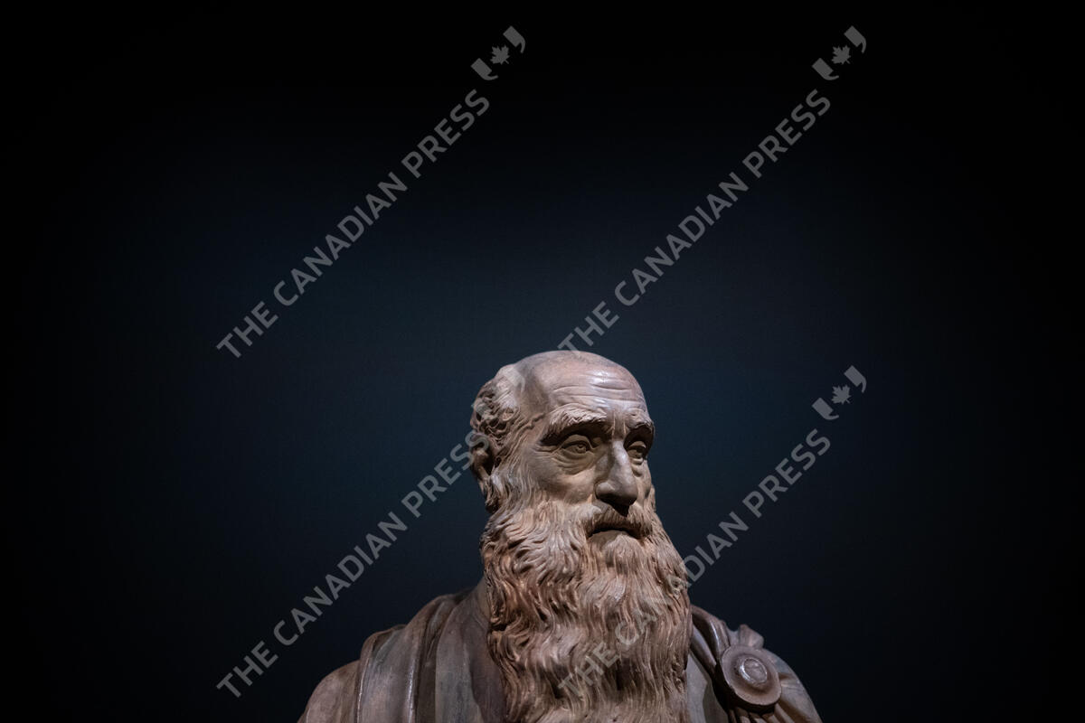 Sculpture of Giulio Contarini by Italian artist Alessandro Vittoria is seen during a media preview of 'Gathered Leaves: Discoveries from the Drawings Vault' exhibit at the National Gallery of Canada in Ottawa, on Wednesday, Dec. 4, 2024. The exhibit marks the Canadian debut of international historical drawings recently acquired by the NGC and features more then 120 drawings THE CANADIAN PRESS/Spencer Colby