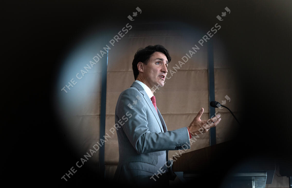 Prime Minister Justin Trudeau gestures during a news conference in Vientiane, Laos, Friday, Oct. 11, 2024. THE CANADIAN PRESS/Adrian Wyld
