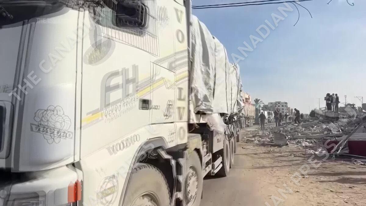 Trucks loaded with aid cross into Gaza Strip as ceasefire takes hold