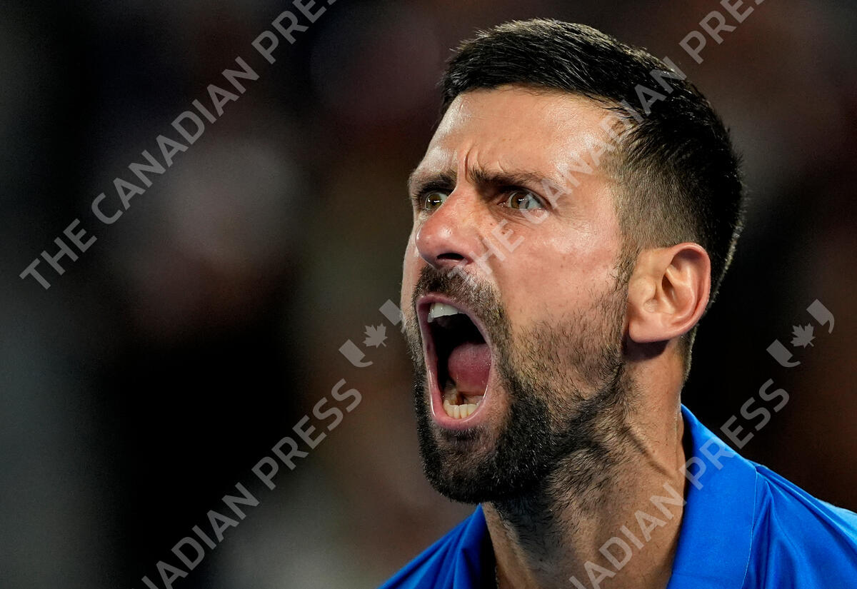 Novak Djokovic of Serbia reacts after winning a point against Tomas Machac of the Czech Republic during their third round match at the Australian Open tennis championship in Melbourne, Australia, Friday, Jan. 17, 2025. (AP Photo/Asanka Brendon Ratnayake)