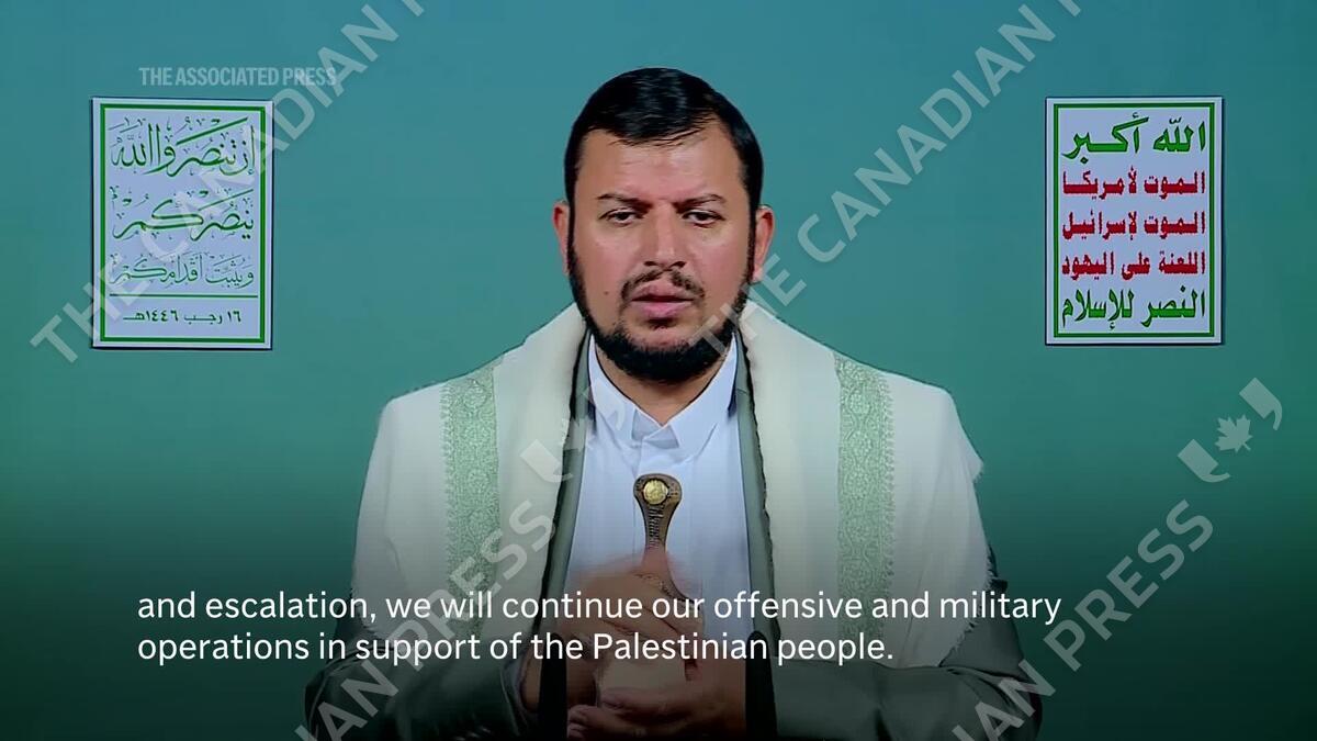 The leader of the Iranian-backed Houthi rebels in Yemen said their attacks on shipping routes in the Red Sea and against Israel will continue into the start of the ceasefire between Hamas and Israel.