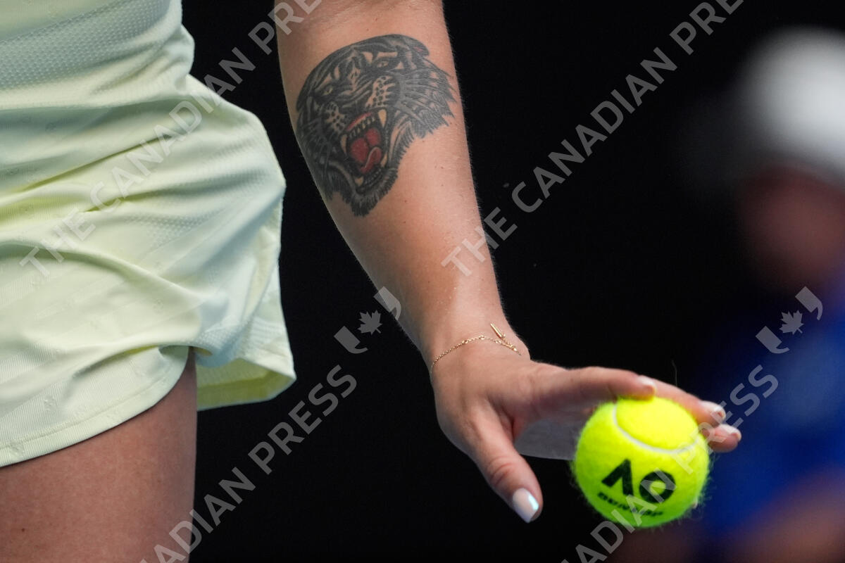 Aryna Sabalenka of Belarus prepares to serve to Clara Tauson of Denmark during their third round match at the Australian Open tennis championship in Melbourne, Australia, Friday, Jan. 17, 2025. (AP Photo/Asanka Brendon Ratnayake)