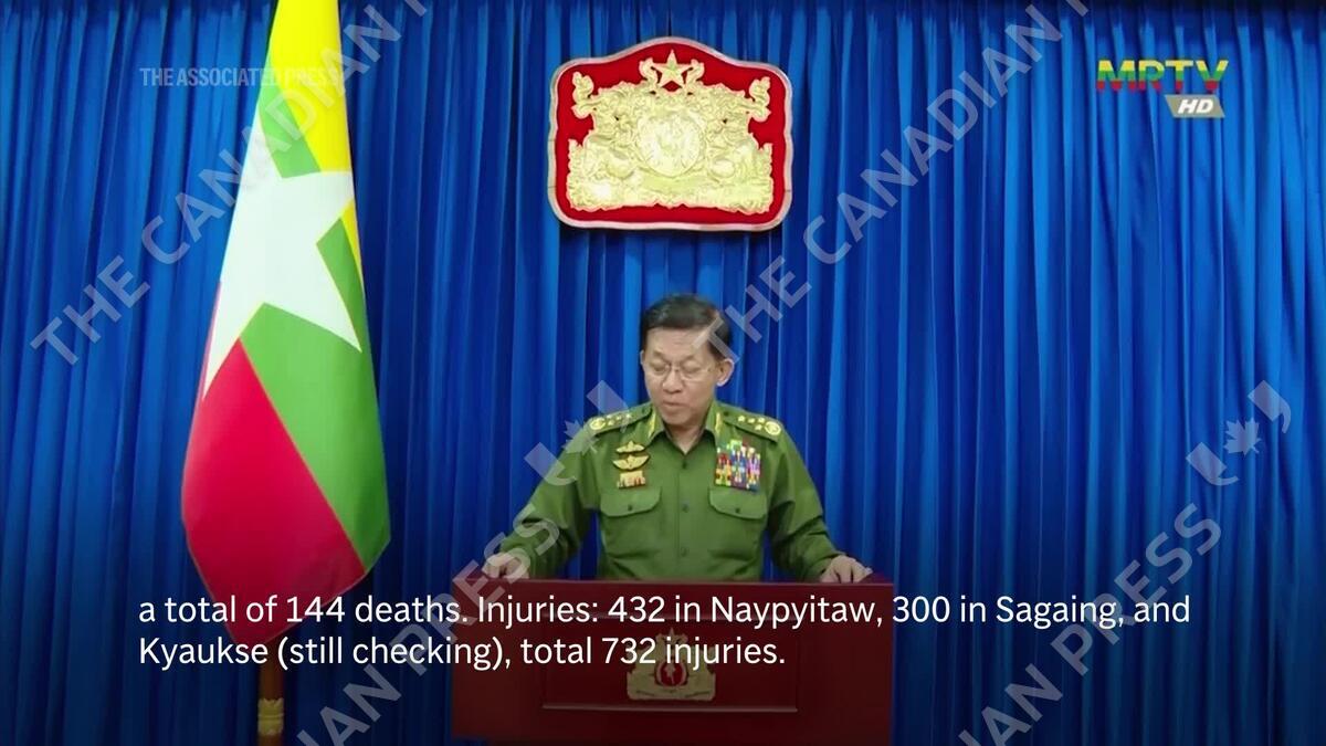 The head of Myanmar's military government has declared a state of emergency, saying 144 people were killed and 732 injured in Friday's earthquake.