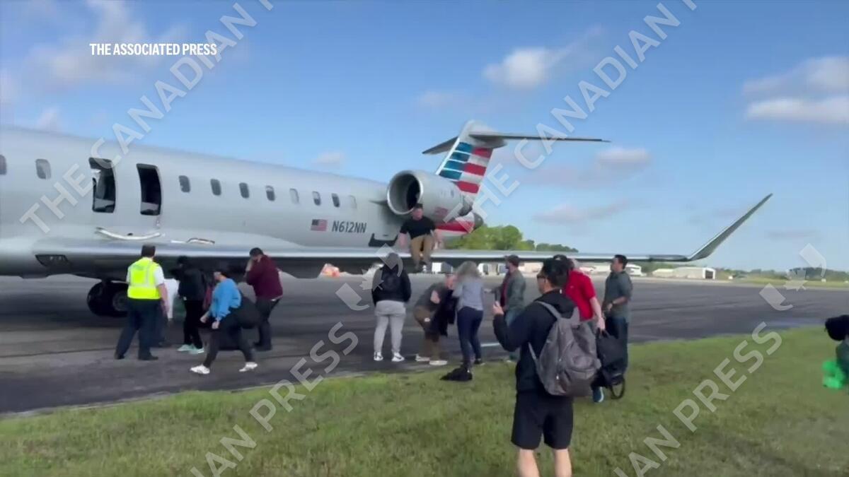 A passenger captured video after his American Airlines flight was forced to evacuate on the wing of the plane following a maintenance issue. The inbound flight from Charlotte Douglas International Airport landed at the Augusta Regional Airport in Georgia before passengers were evacuated from the flight.