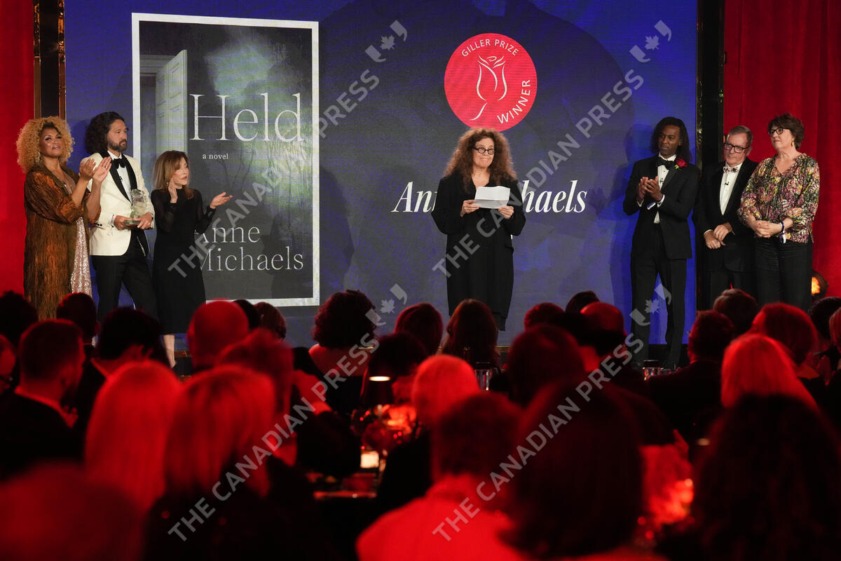 Anne Michaels accepts the Giller Prize for her book "Held' at a ceremony in Toronto, Monday, Nov. 18, 2024. THE CANADIAN PRESS/Chris Young