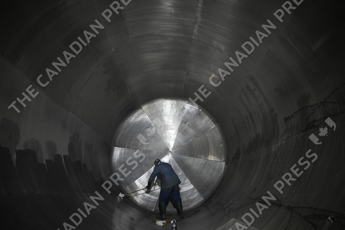 An employee cleans a container at a steel tank factory in Mexico City, Tuesday, Feb. 11, 2025. (AP Photo/Eduardo Verdugo)