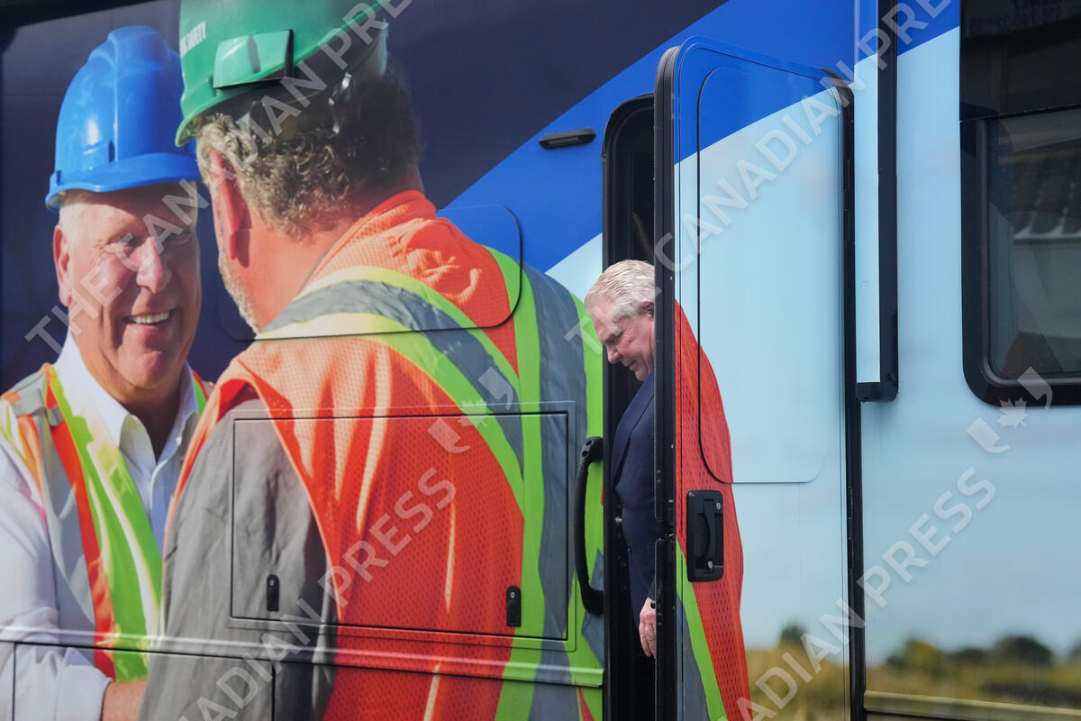 Progressive Conservative Leader Doug Ford arrives for a press conference in Etobicoke on Monday February 3, 2025.THE CANADIAN PRESS/Chris Young