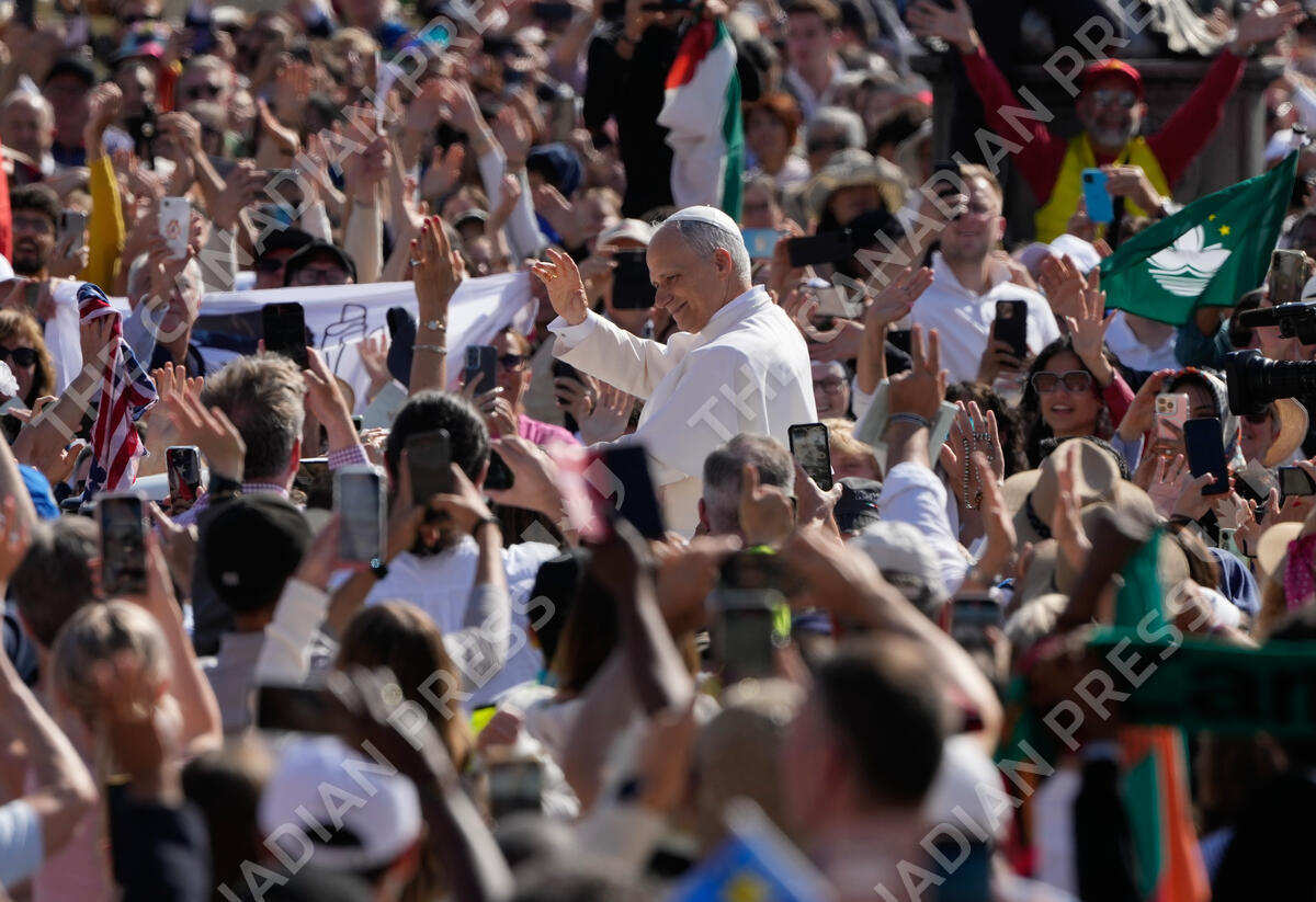 Pope Leo XIV, on his popemobile, tours St. Peter's Square at the Vatican prior to the inaugural Mass of his pontifcate, Sunday, May 18, 2025. THE CANADIAN PRESS/Adrian Wyld