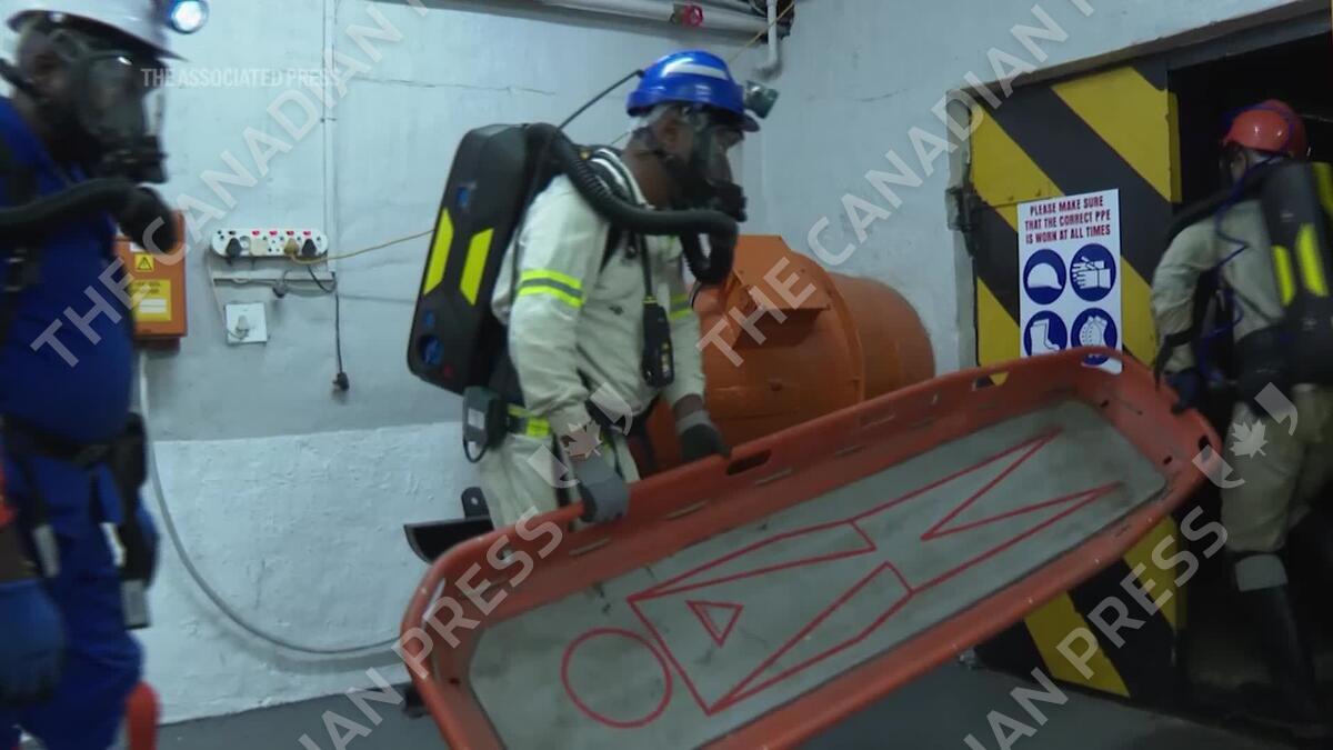 A specialized mine rescue camera was lowered late last year into an almost 2.6-kilometer (1.6-mile) deep mineshaft in South Africa, where hundreds of illegal miners were reported to be trapped, starving, dehydrated and desperate to get out. ( AP video by Alfonso Nqunjana)