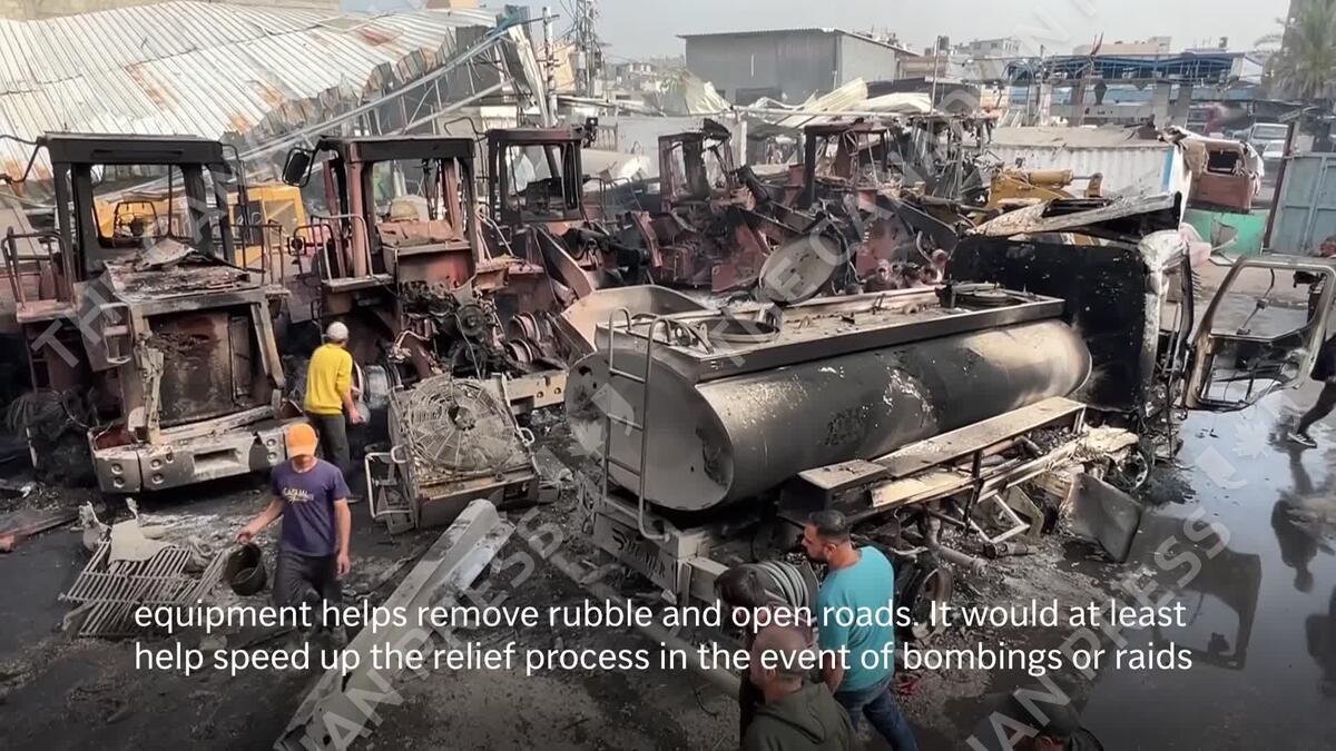 Israel’s military destroys bulldozers and other heavy equipment that had been supplied by mediators Egypt and Qatar to clear the rubble in northern Gaza, Palestinian municipal authorities said. (Production: Wafaa Shurafa)
