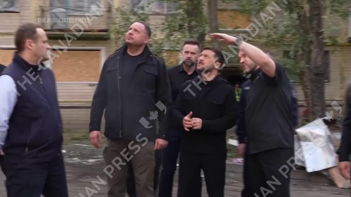 CP174928547 | Zelenskyy visits site of the latest missile attack in Ukrainian capital Kyiv