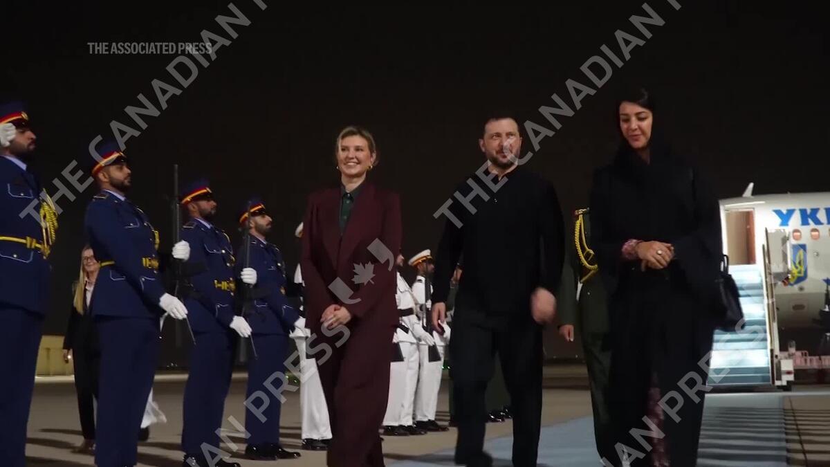 Ukraine president and first lady welcomed by Emirati minister as they arrive in Abu Dhabi for official visit
