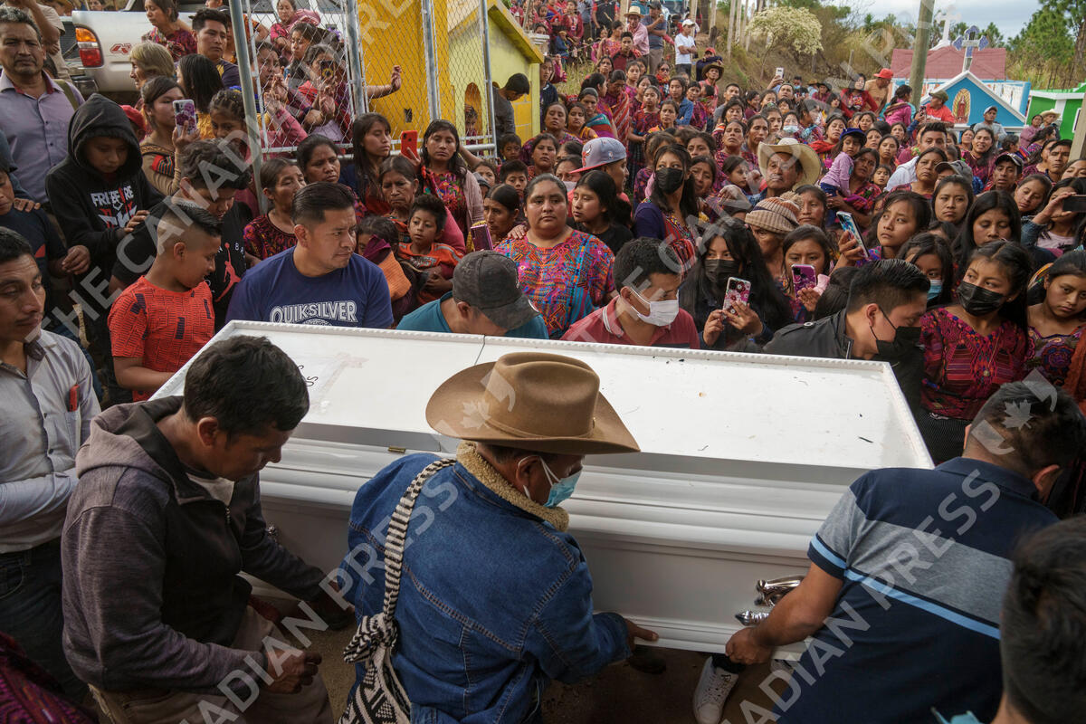 Relatives carry the coffin containing the remains of Guatemalan migrant Wilson Ramos Us, 15, at the cemetery in Joyabaj, Guatemala, Friday, Jan. 14, 2022. Us was one of 56 people who was killed when a truck carrying Central American migrants rolled over on a highway in Tuxtla, Mexico, on Dec. 9. (AP Photo/Moises Castillo)
