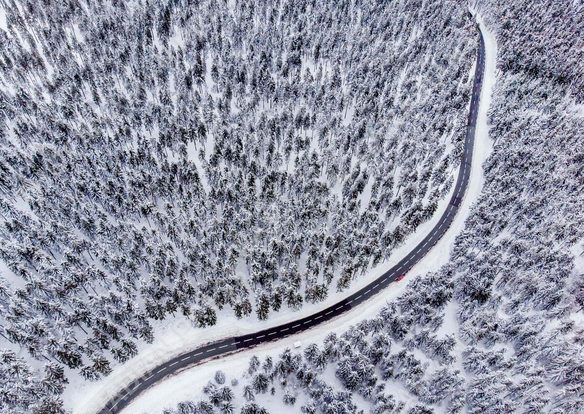 A road leads through the snow covered Taunus forest near Frankfurt, Germany, Tuesday, Jan. 11, 2022. (Photo/Michael Probst)